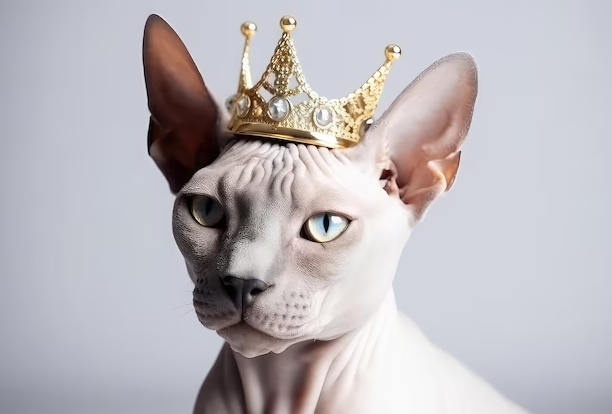 O Sphynx é uma raça conhecida por sua ausência de pelos e pele enrugada. É afetuoso, brincalhão e adora a companhia humana. Por não ter pelos, exige cuidados especiais com a pele, como banhos frequentes para evitar o acúmulo de oleosidade.